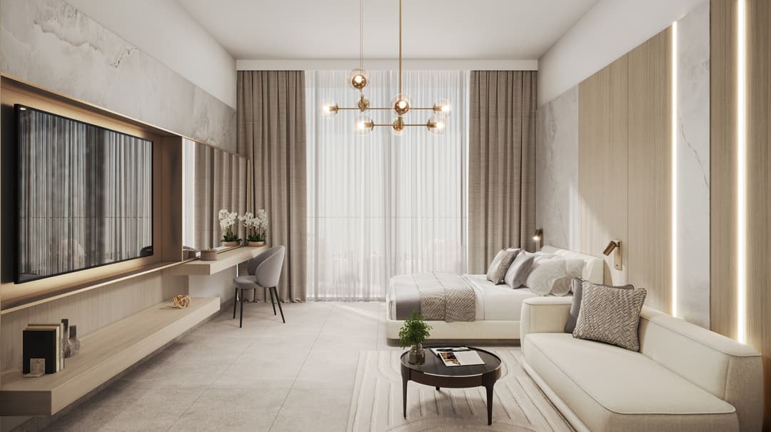 This icon of understated luxury comprises perfectly crafted 156 units, including 42 studios, 42 one-bedroom apartments, 66 two-bedroom apartments, and 6 three-bedroom apartments. Some units are fully furnished, fitted, and equipped with the latest smart home technologies. From the moment you step into this exceptional property, you will be captivated by its remarkable architecture and design excellence, creating a sense of absolute harmony and infinity.